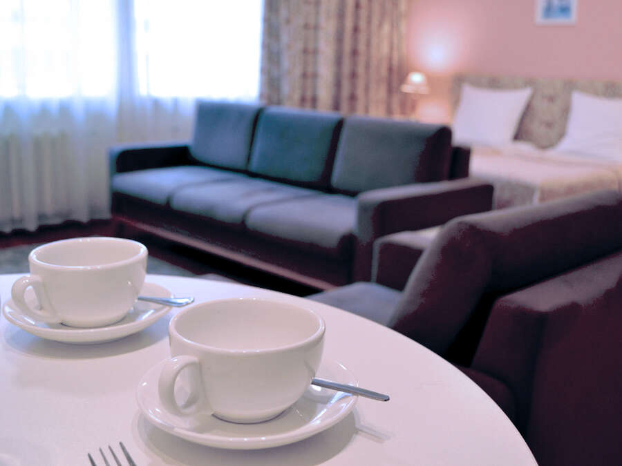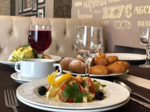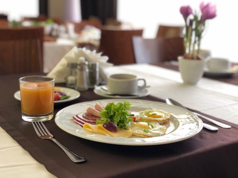 Питание организовано по следующему расписанию: завтрак 8.30-10.30, обед 13.00-15.00, ужин 18.00-20.00 (в пятницу, субботу и праздничные дни — ужин до 21.00)