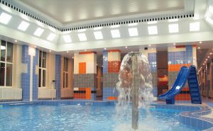 Есть детский бассейн — глубина 0,7см, детская горка. Температура воды в бассейне 28-29°С