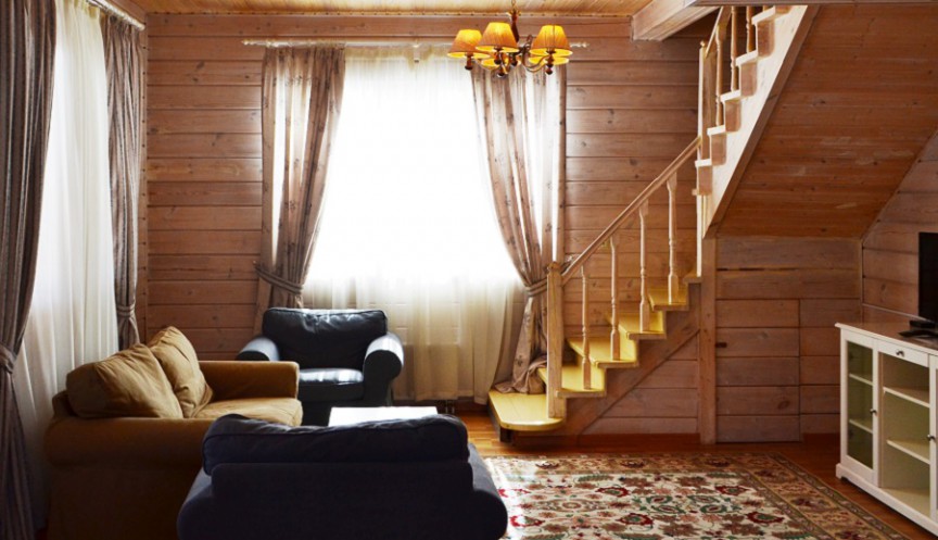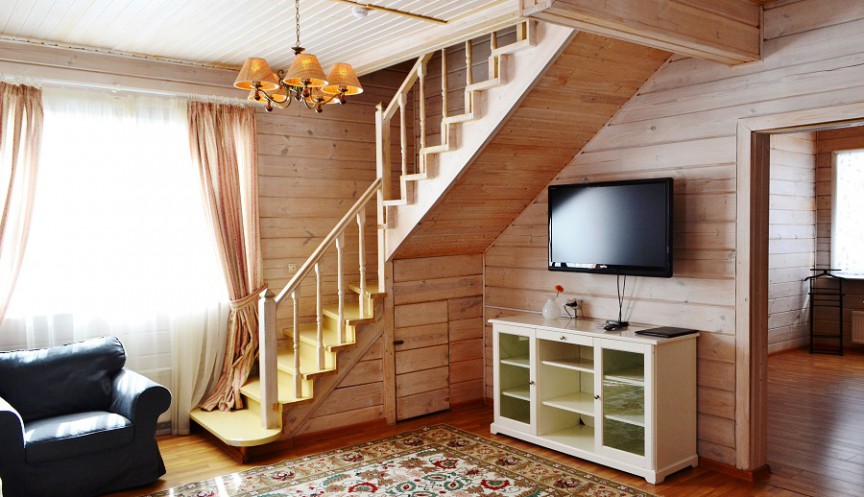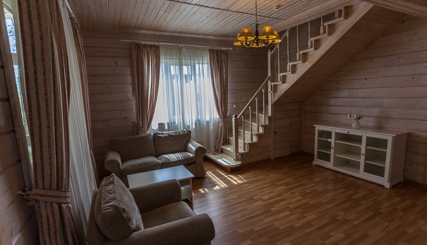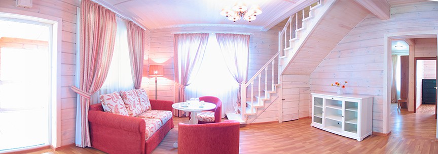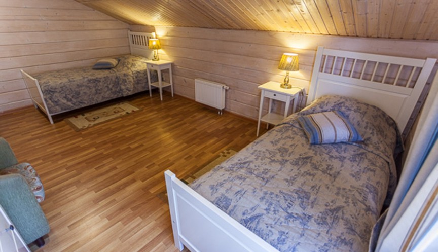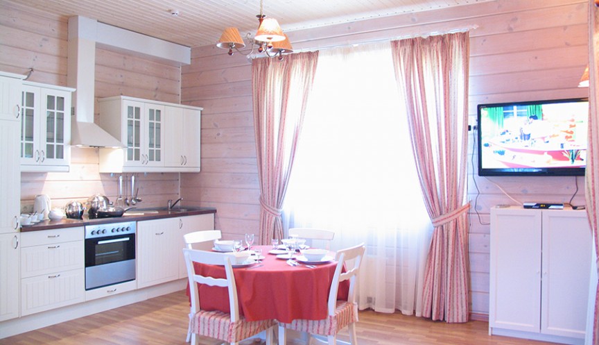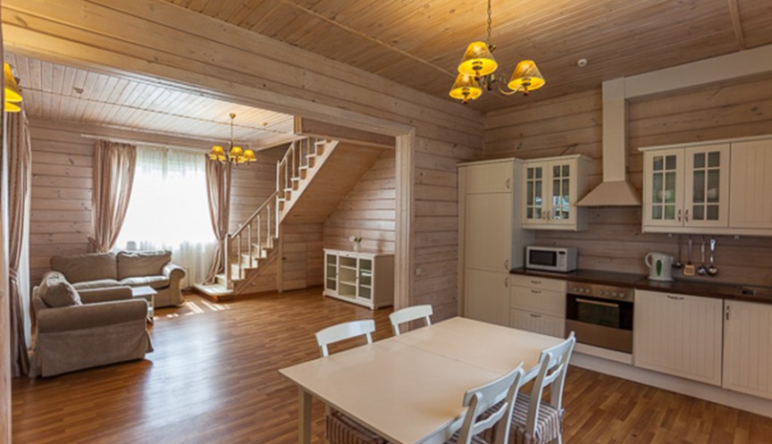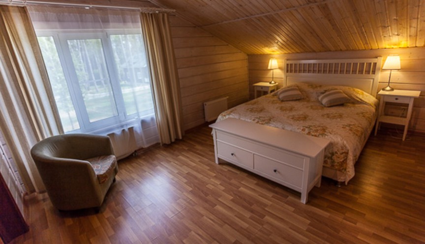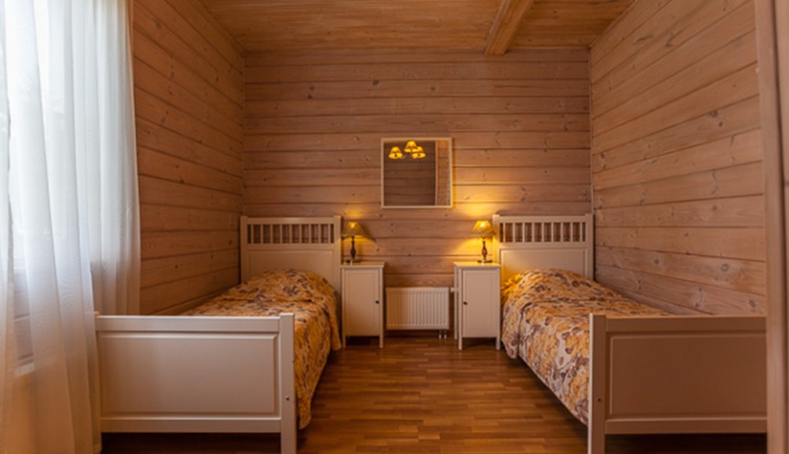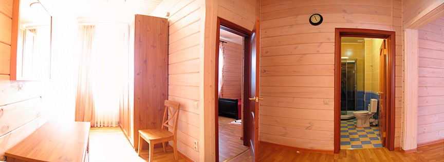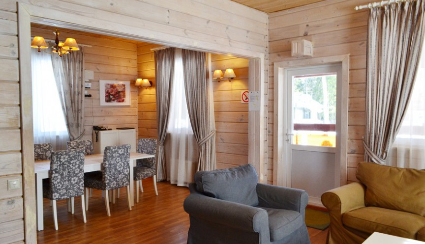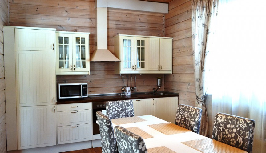В коттедже: 4 спальни (6 односпальных и 1 двуспальная кровати), гостиная с зоной кухни и столовой, 3 ванных комнаты с фенами и туалетными принадлежностями, стиральная машинка, открытая летняя веранда, телевизор, IP-TV, WI-FI, отдельная гардеробная, утюг, гладильная доска.