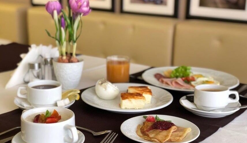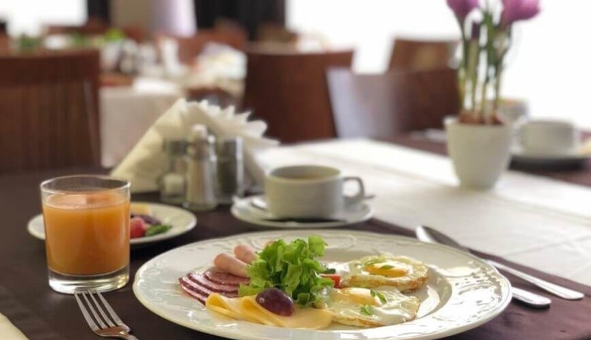 Мы уверены, что каждый Гость найдет что-то по своему вкусу и сможет насладиться вкусной и здоровой пищей в уютной атмосфере нашего отеля.