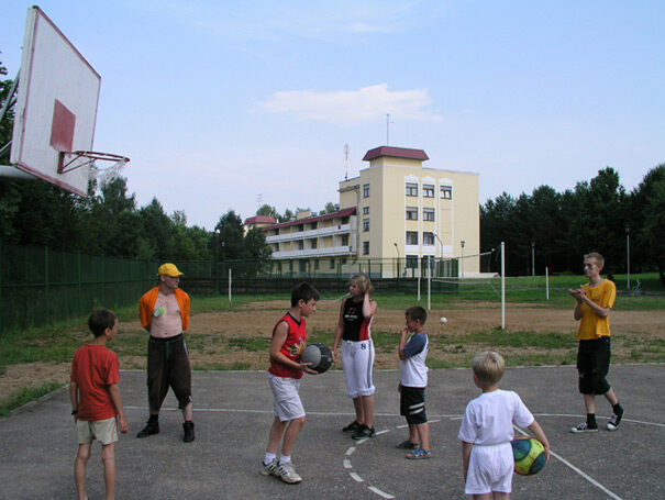 • универсальная спортивная площадка с естественным и искусственным освещением, с каучуковым покрытием «CRUMB», разметкой и натянутой сеткой, с баскетбольными кольцами, с защитными бортами и трибунами. Площадка предназначена для проведения всех видов спортивных игр. В зимнее время заливается каток.